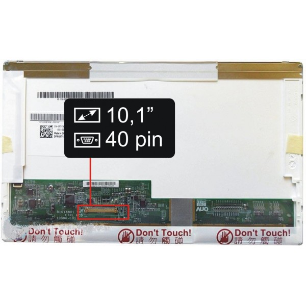 Základné údaje: lesklý povrch, veľkosť 10,1", rozlíšenie WSVGA 1024x600, LED podsvietenie, 40 pinový LED konektor umiestnený na displeji vľavo dole (pri pohľade na zadnú stranu displeja).