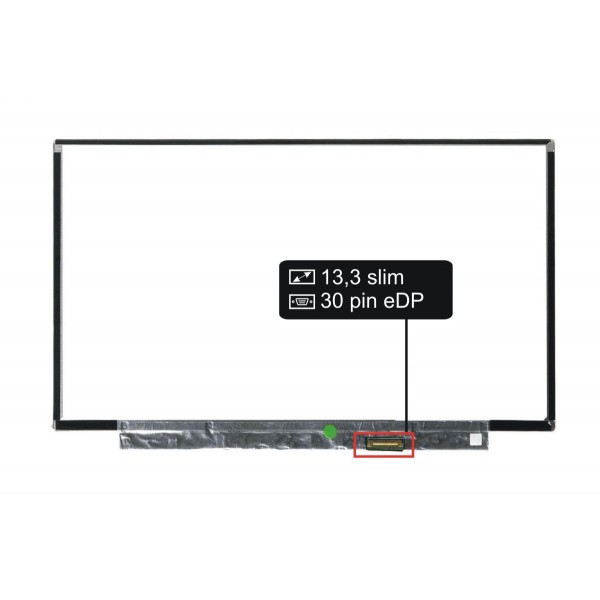 Základné údaje: lesklý povrch, veľkosť 13,3", rozlíšenie HD 1366x768, LED podsvietenie, 30 pinový LED konektor umiestnený na displeji v pravo dole (pri pohľade na zadnú stranu displeja).