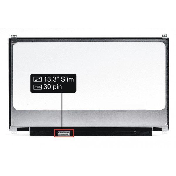Základné údaje: lesklý povrch, veľkosť 13,3", rozlíšenie Full HD 1920x1080, LED podsvietenie, 30 pinový LED konektor umiestnený na displeji vľavo dole (pri pohľade na zadnú stranu displeja).