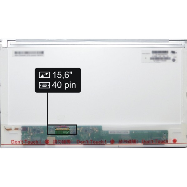 Základné údaje: lesklý povrch, veľkosť 15,6", rozlíšenie HD 1366x768, 3D !, LED podsvietenie, 40 pinový LED konektor umiestnený na displeji vľavo dole (pri pohľade na zadnú stranu displeja).