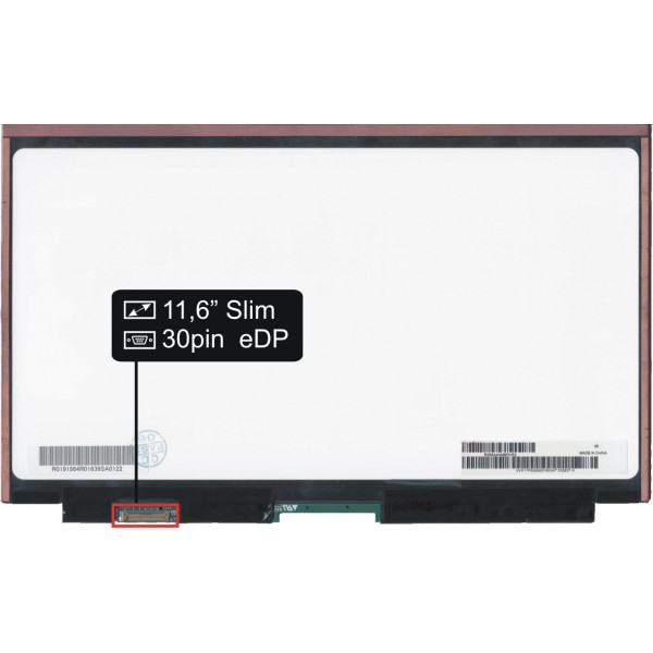 Základné údaje: matný povrch, veľkosť 11,6", rozlíšenie FHD 1920x1080, LED podsvietenie, 30 pinový LED konektor umiestnený na displeji vľavo dole (pri pohľade na zadnú stranu displeja).