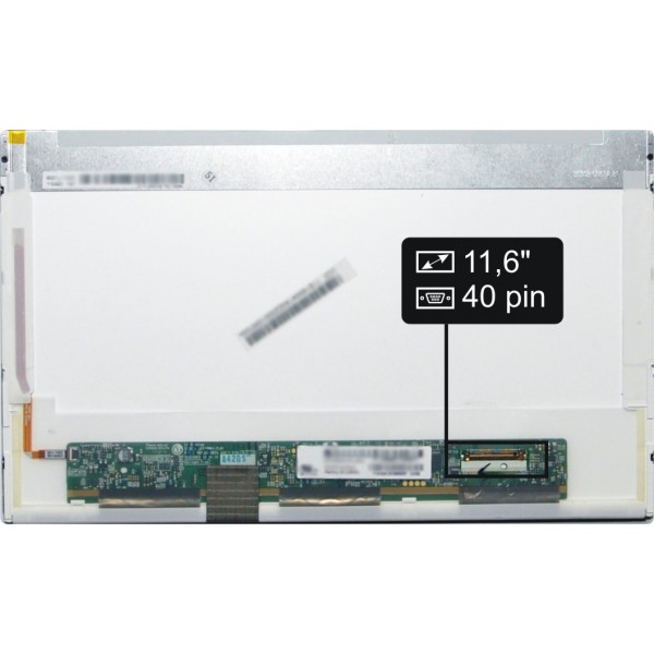Základné údaje: veľkosť 11,6", rozlíšenie HD 1366x768, LED podsvietenie, 40 pinový LED konektor umiestnený na displeji vľavo dole (pri pohľade na zadnú stranu displeja).